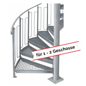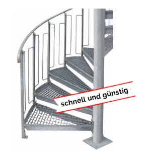 Die Spindeltreppe EXPRESS ist feuerverzinkt nach DIN EN ISO 1461und überbrückt ein Geschoss bis 4.000 mm Höhe. Die Standarddurchmesser betragen 1.600, 1.800 und 2.000 mm. Die Lieferzeit beträgt ca. 10 Arbeitstage.