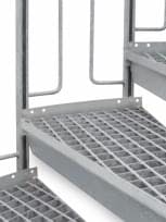 Die Trittflächen können wahlweise mit Gitterrosten, Blechprofilrosten oder Tränenblech ausgeführt werden.